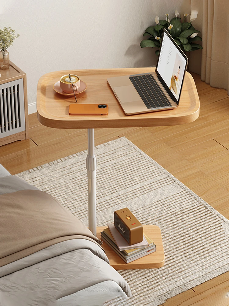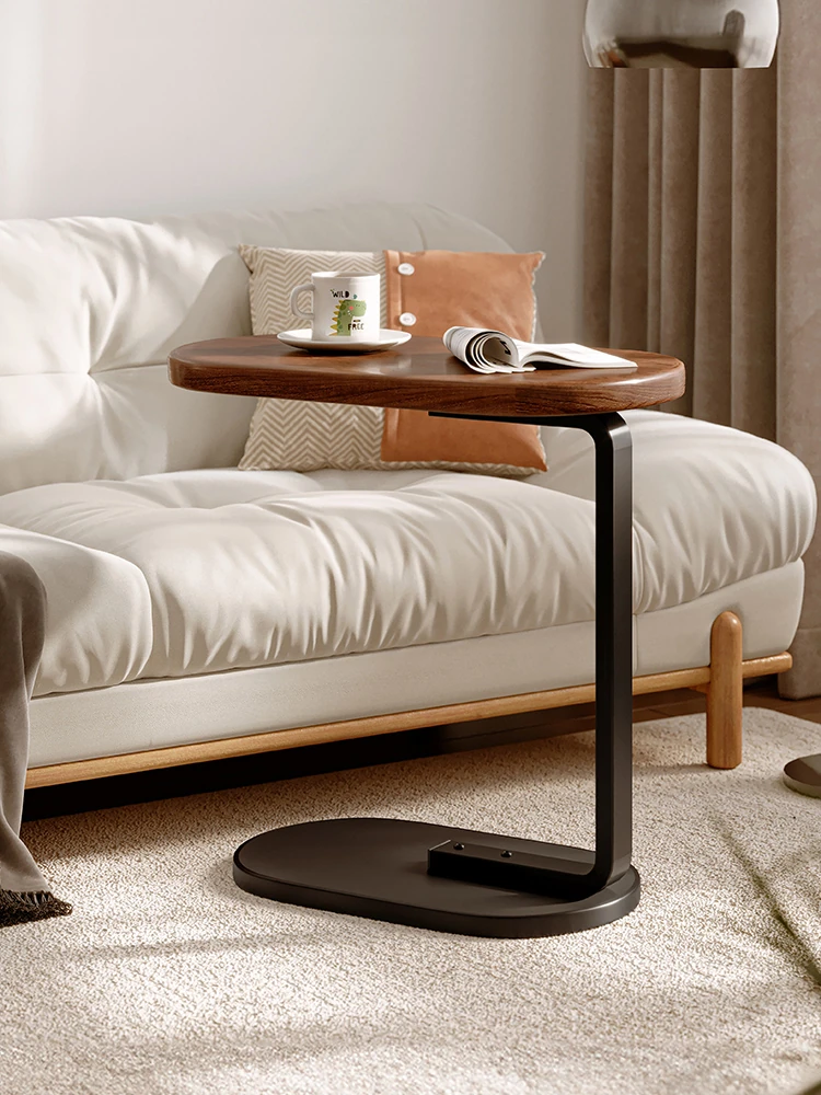 Stylish Solid Wood C-Shaped Side Table - Movable Coffee Table with Wheels for Home, Perfect for Small Living Rooms and Study Spaces
