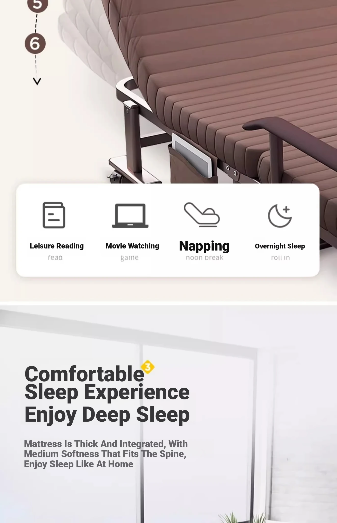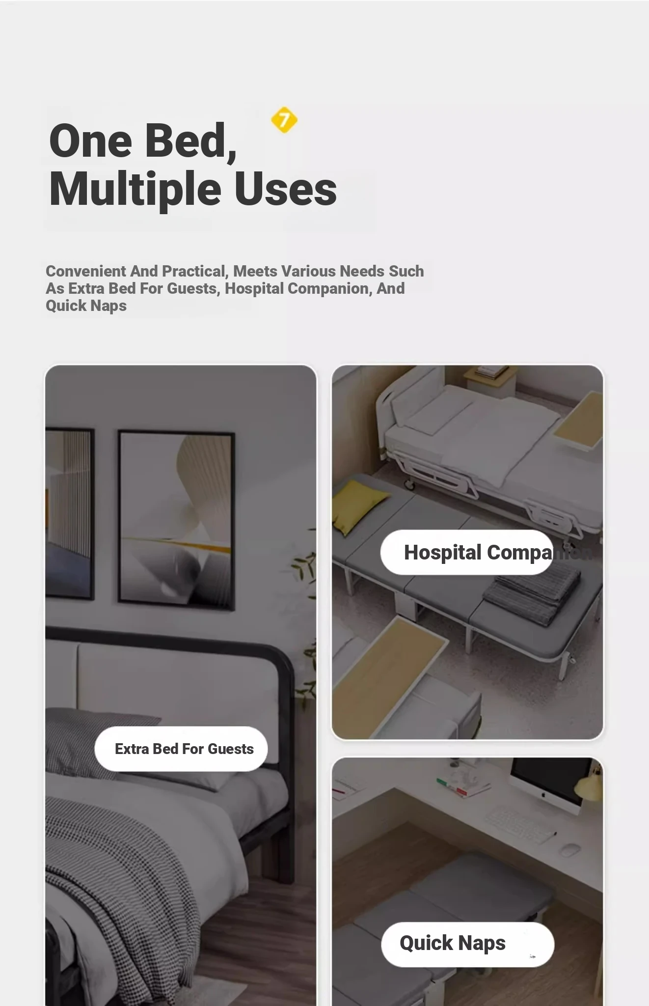 Single Folding Bed for Napping - Perfect Office Rest Solution, Easy to Use for Hospital Care, Ideal for Adults and Home Use, Compact and Convenient for Quick Setup.
