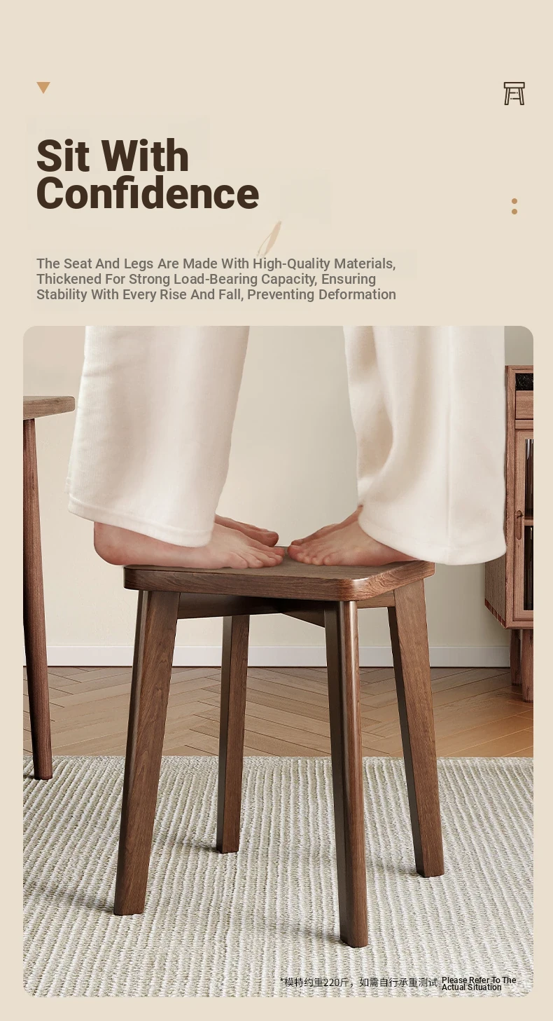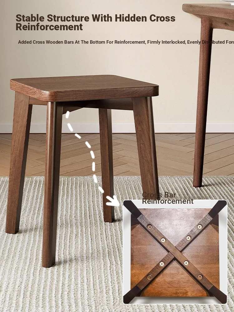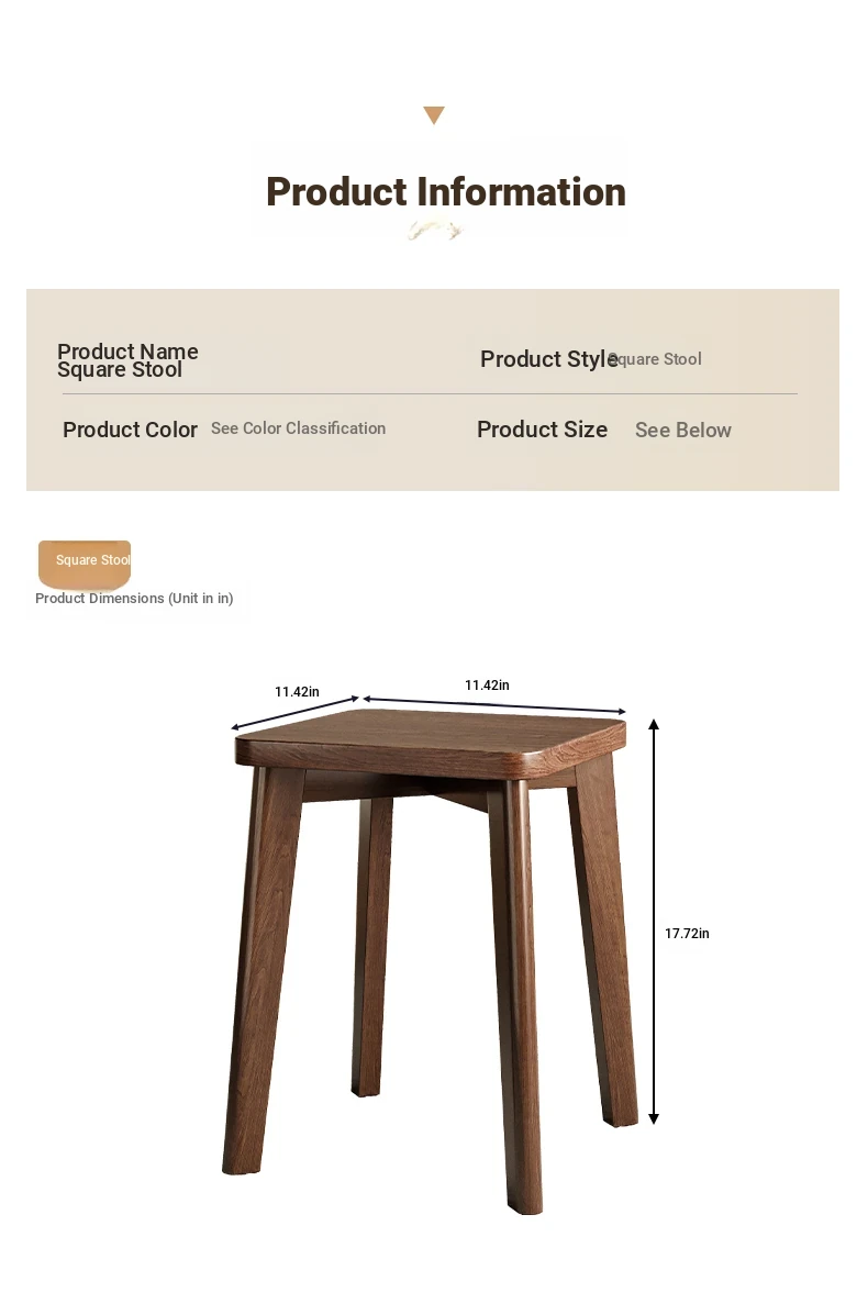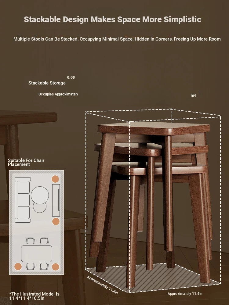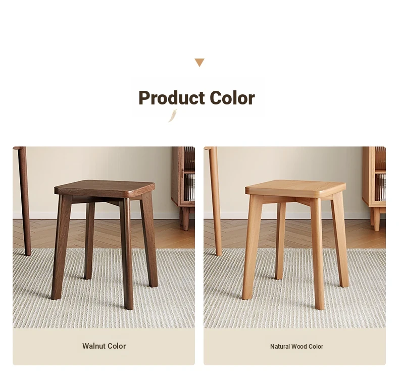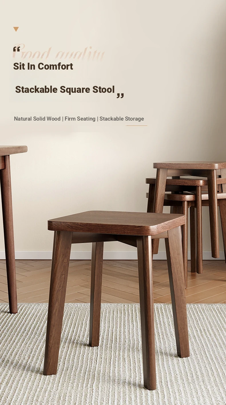 Stackable Solid Wood Stool - Premium Beech High Stool for Living Room, Elegant Dining Chairs with Nordic Aesthetic, Versatile Square Bench for Home Use