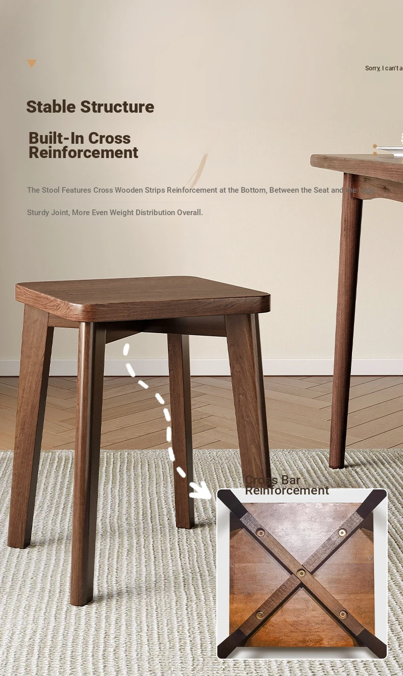 [Upgraded Beech Wood Model] Walnut Color Square Stool 8 Pieces