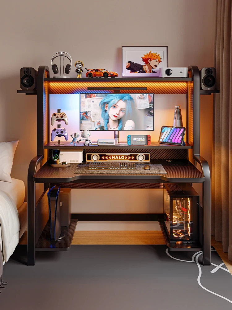 ゲーミングデスク&チェアセット|カーボンファイバー製のスタイリッシュな学習デスク|家庭用・学生向け・主機を置ける広々スペース|快適な作業環境をサポート!