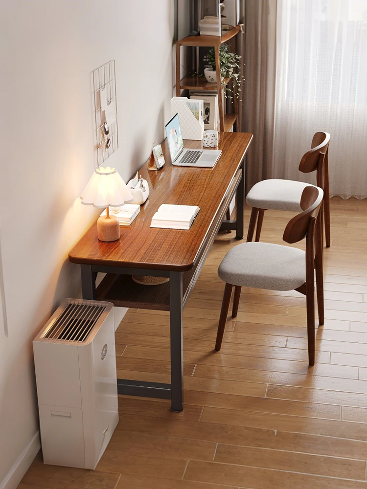 天然木製ダブルデスク|シンプルなコンピューターデスク|寝室や家庭にピッタリ|壁に寄せて使えるスリムな長方形ワークテーブル|快適な作業環境を提供します!