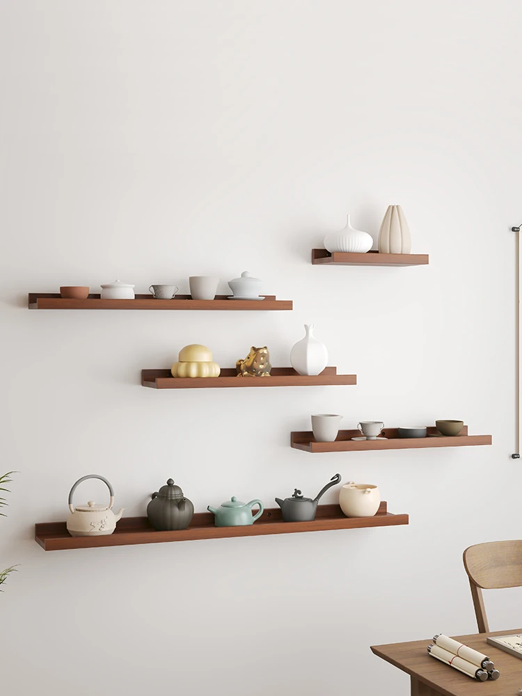 全実木製ウォールシェルフ - ウォールナット色のマグラック、ティーカップ&水杯用の壁掛け収納、パイン材の棚板でスタイリッシュに整理整頓!おしゃれで機能的なインテリアを演出します!
