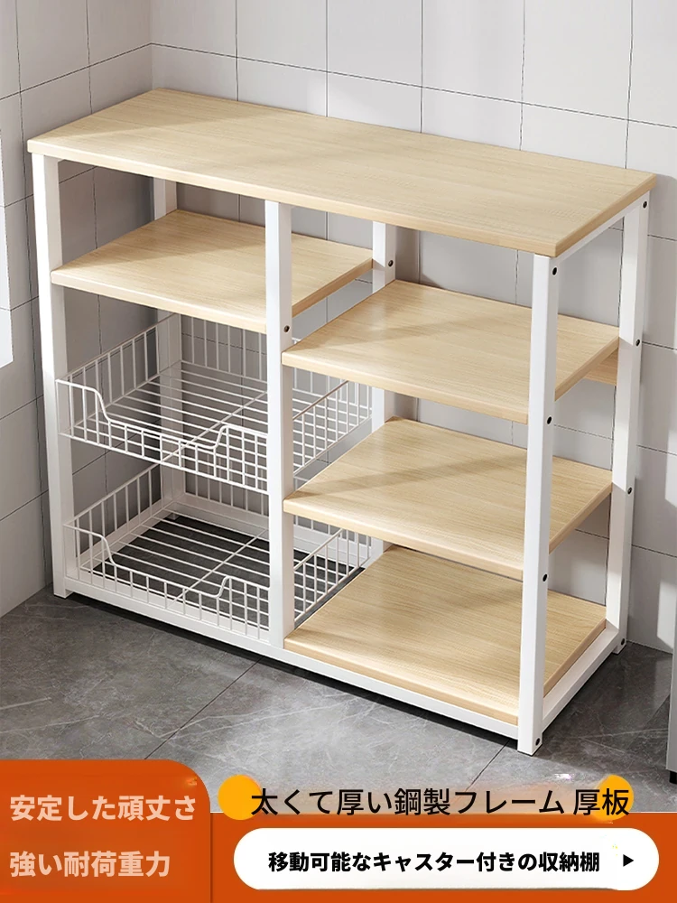 移動可能!多層収納ラック - キッチンやリビングに最適な多機能のスタンド式収納棚!整理整頓が簡単で、家中の雑貨をスッキリ収納できます。おしゃれで実用的な収納ソリューションをお探しの方におすすめ!