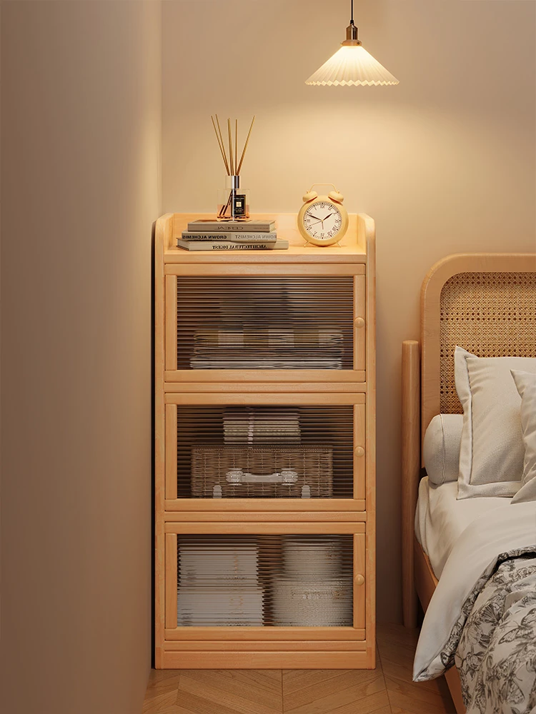 高品質な無垢材のベッドサイドキャビネット、スリムな収納棚!壁際にぴったりフィットするコンパクトなデザインで、お部屋をスッキリ整理。書籍や小物をおしゃれに収納できる必須アイテムです!