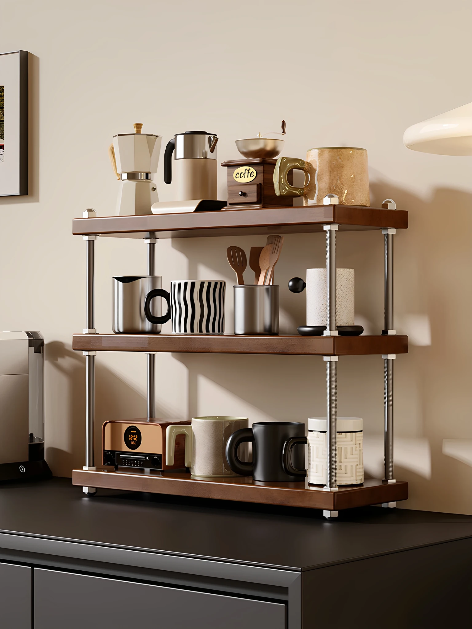 レトロなマグカップ収納ラック - デスクトップ用光軸ディスプレイスタンド、カフェコーナーにぴったりな無垢材製カップホルダー、ダイニングサイドボード用の回転式コーナーラック。あなたの空間をスタイリッシュに演出します!