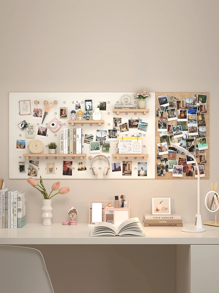天然木製の穴あきボード 壁掛け式の部屋装飾 おしゃれなポラロイド収納棚 創造的なフォトウォール 写真展示スタンドで思い出を美しく飾ろう!