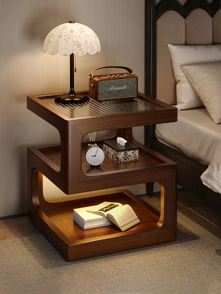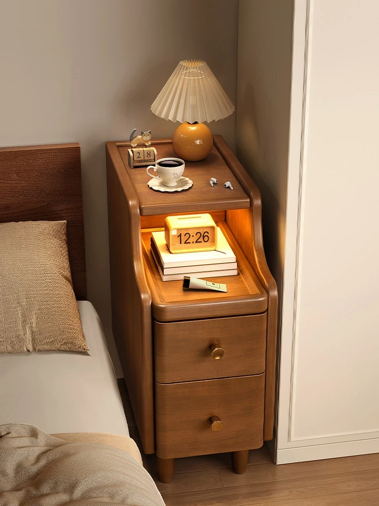 全実木ベッドサイド収納ラック - ナチュラルウッド風のクリエイティブな多機能小型キャビネット、魅力的でスタイリッシュな収納ソリューション!あなたの寝室を美しく整理整頓しましょう!