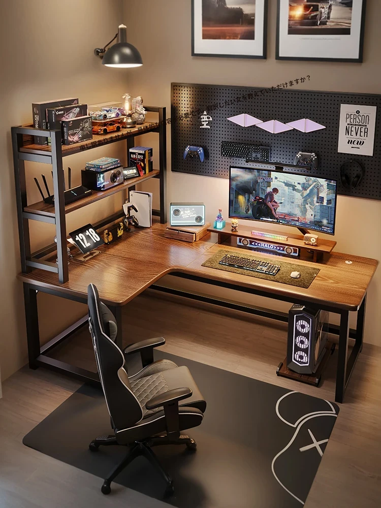 角度調整可能な高品質な木製デスク&書棚一体型!家庭やオフィスに最適なL字型ゲーミングデスク。快適な作業空間を提供し、スタイリッシュなデザインであなたの部屋を彩ります。