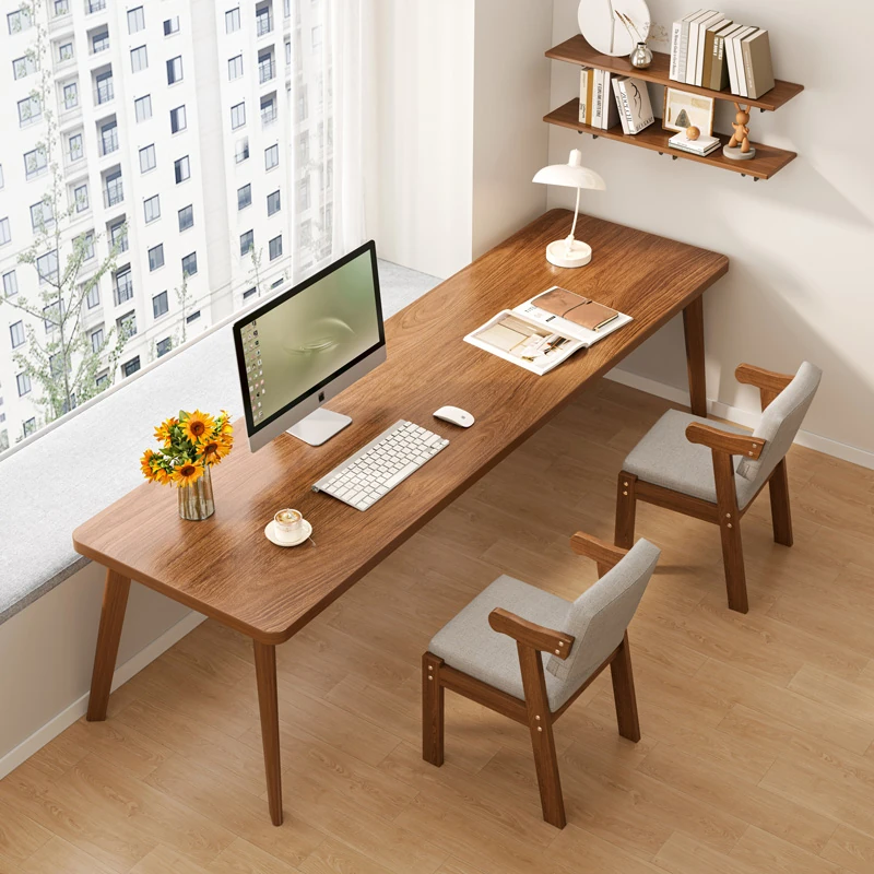 シンプルでスタイリッシュな実木製デスク - 家庭用、学生向け、長方形のコンピューターデスク。快適な学習と作業環境を提供する、理想的な書き物スペースです。