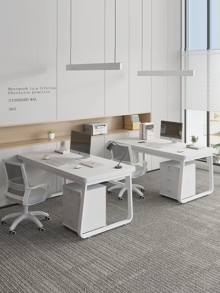 モダンでシンプルなオフィスデスクセット!2人用の職員デスクと椅子、便利な引き出し付き。自宅やオフィスに最適なスタイリッシュな作業環境を提供します。快適な仕事空間を手に入れましょう!