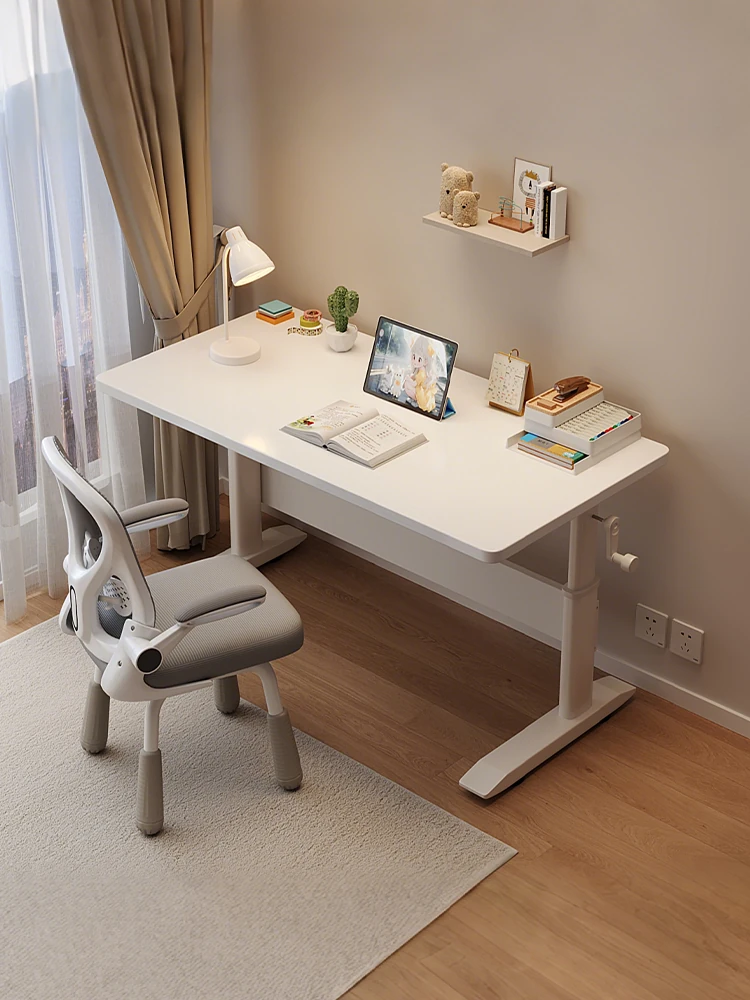 昇降式パソコンデスク|学生・家庭用に最適なライティングデスク|ベッドサイドにもぴったり!子供の学習にも最適なハンドル操作のオフィスデスク【フレキシブルな作業環境を実現】