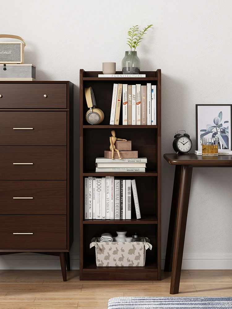 実木製のスリム収納キャビネット|家庭用の狭いスペースにぴったりな多層ラック|デスク横に最適な本棚&収納棚|スタイリッシュで機能的な収納ソリューション!